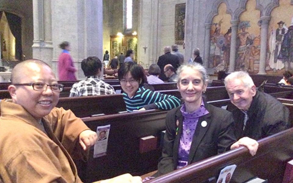 At the June 27, 2015 celebration of the 70th anniversary of the United Nations, which took place concurrently with the 15th anniversary celebration of URI's charter signing, URI Co-Director of Global Programs & Organizational Development Sally Mahé led an Appreciative Inquiry session for the crowd gathered at Grace Cathedral in San Francisco, California, USA.